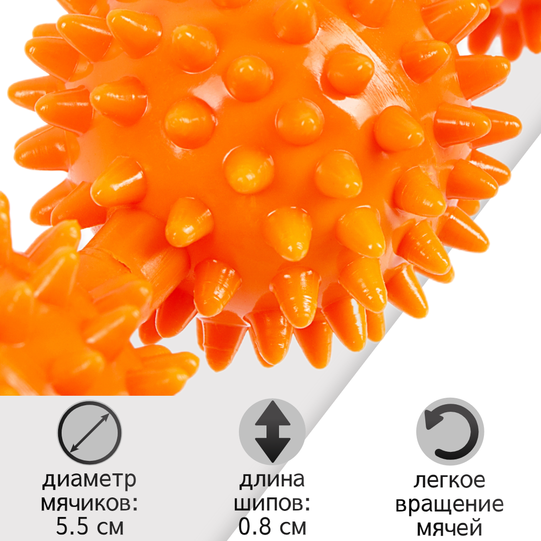 Купить Ручной МФР массажер механический М3, 5 массажных мячей на палке, оранжевый (ролик для тела, для спины и шеи, ног, антицеллюлитный) STRONG BODY