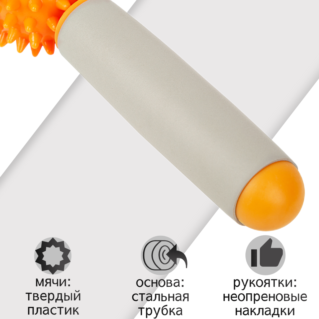 СохранитьРучной МФР массажер механический М3, 5 массажных мячей на палке, оранжевый (ролик для тела, для спины и шеи, ног, антицеллюлитный) STRONG BODY интересное: