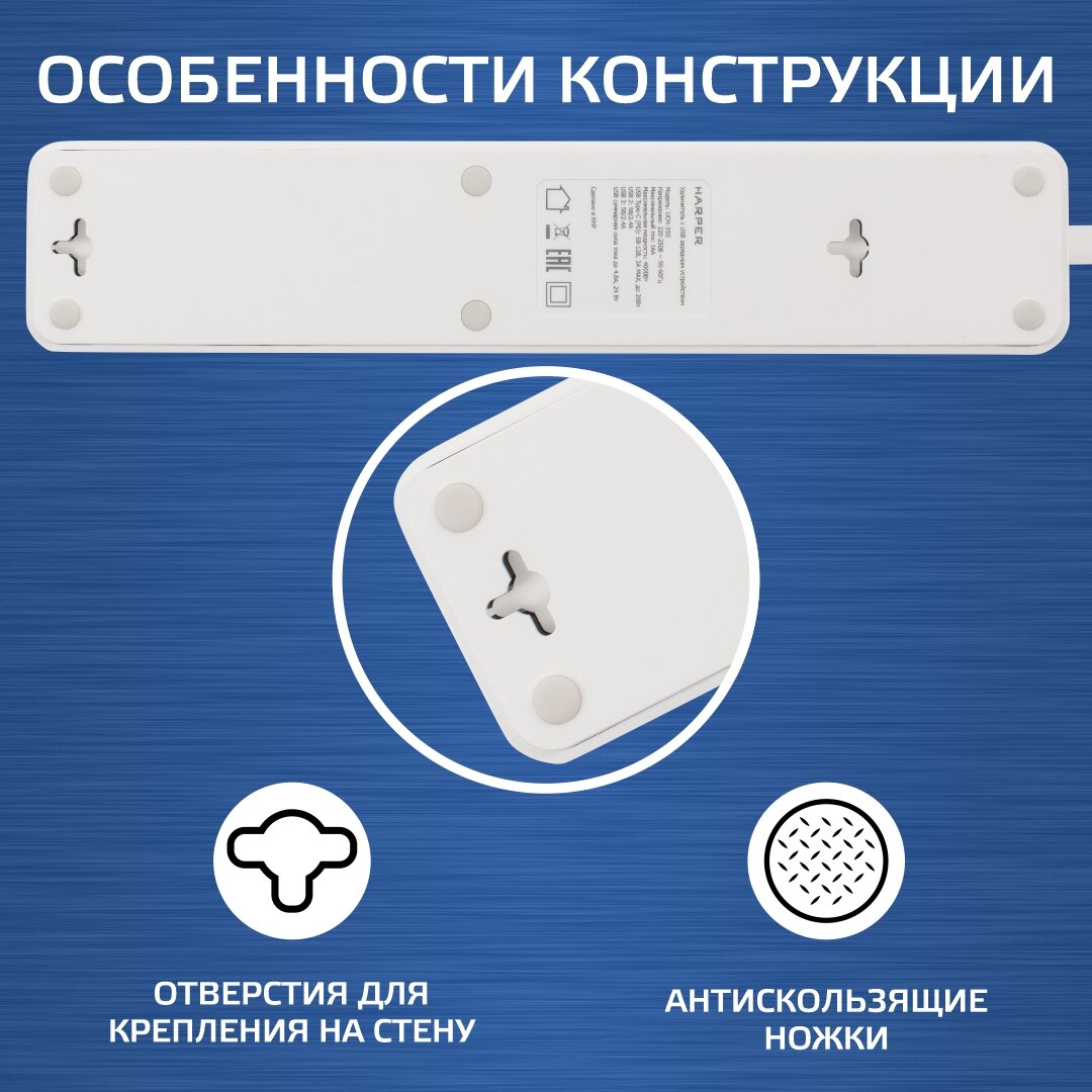 Сетевой фильтр с USB зарядкой HARPER UCH-350 белый PD3.0