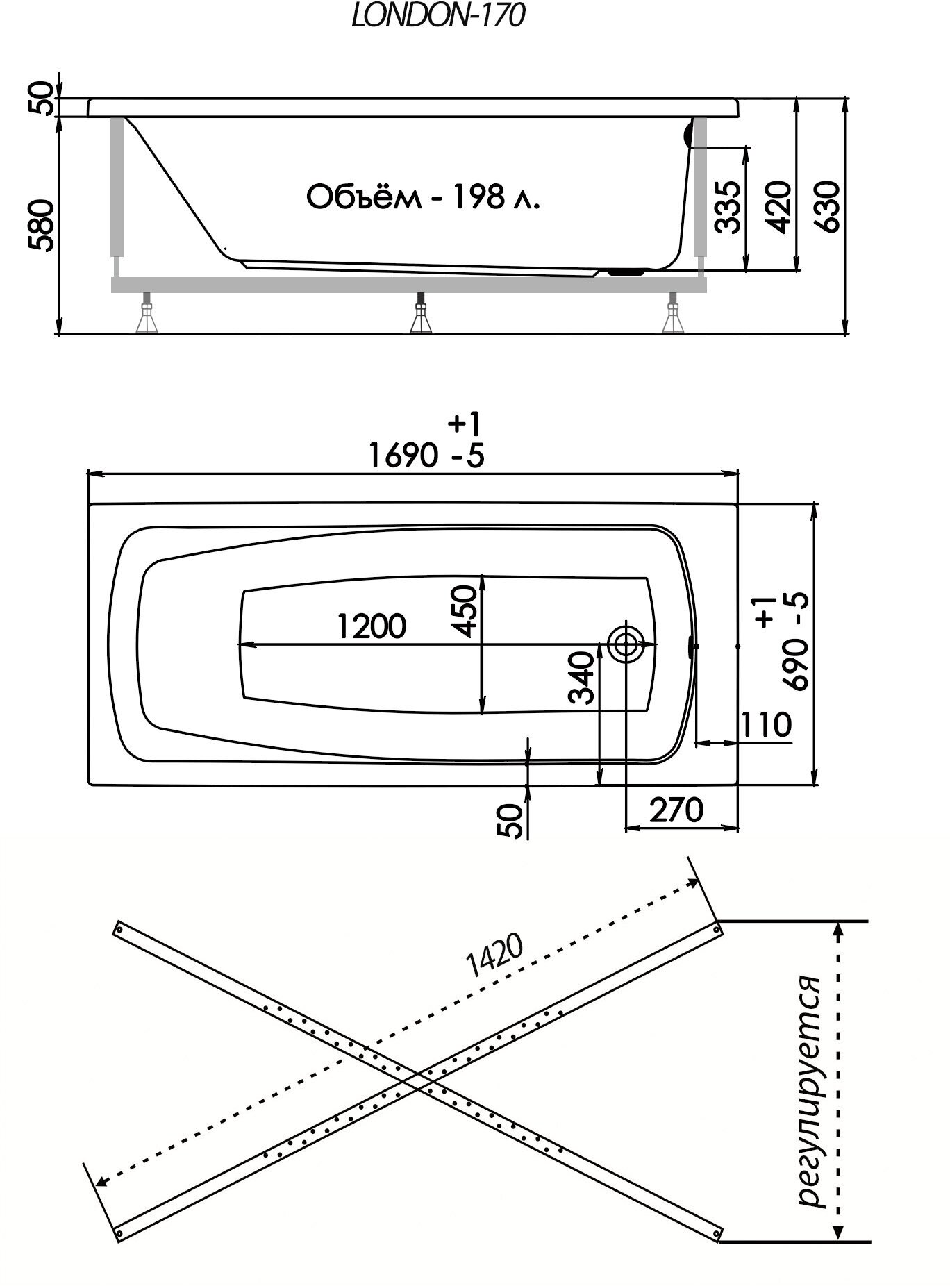 Ванна 1ACReal Лондон 170х70, акрил интересное: