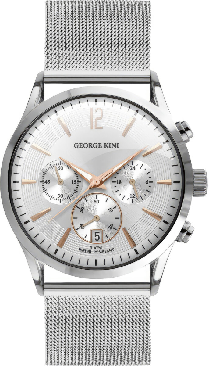 Итальянские кварцевые часы George Kini GK.12.1.1R.21 на стальном браслете, с водозащитой 5 бар и международной гарантией от производителя