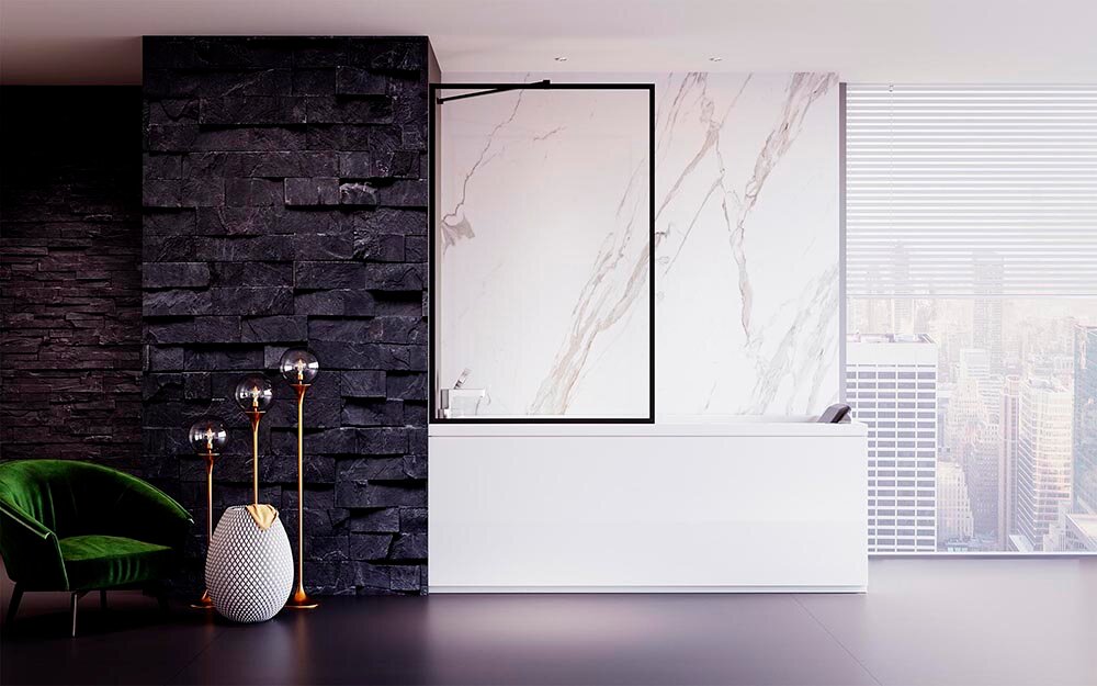 Шторка на ванну Veconi Palau PL-85B 70*150 см (стекло прозрачное 5 мм, профиль черный) интересное: