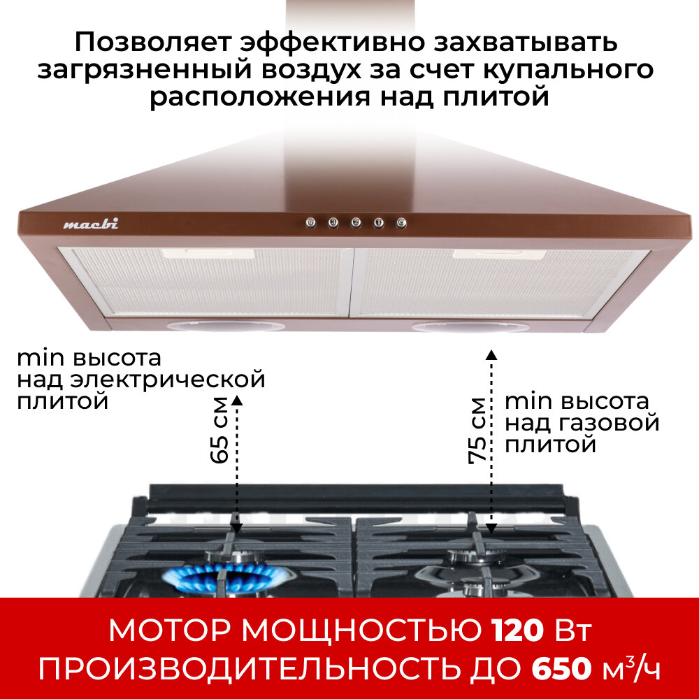 Кухонная вытяжка MACBI DMV 50 650м/3 коричневая, купольная интересное: