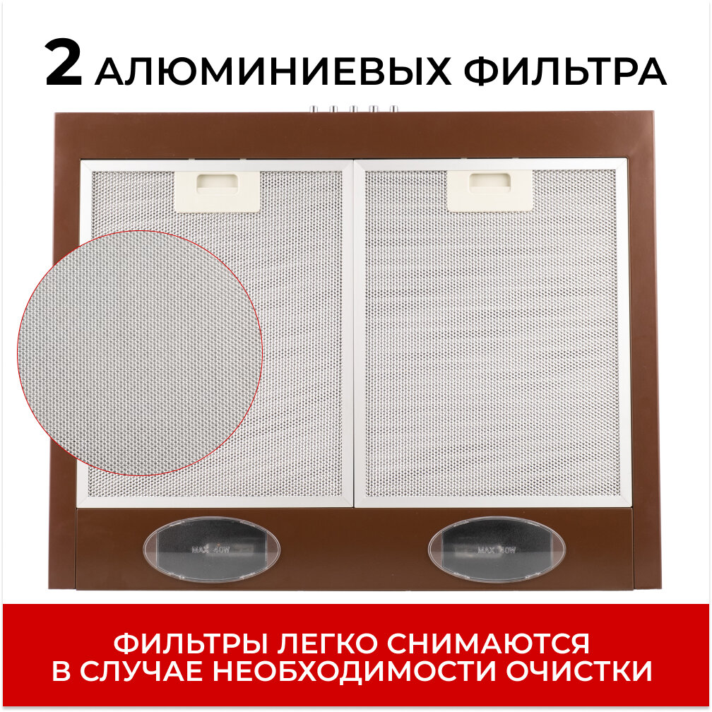 Вытяжка MACBI DMV 50 brown / коричневый / настенная / кнопочное управление / 3 скорости / 50 см.