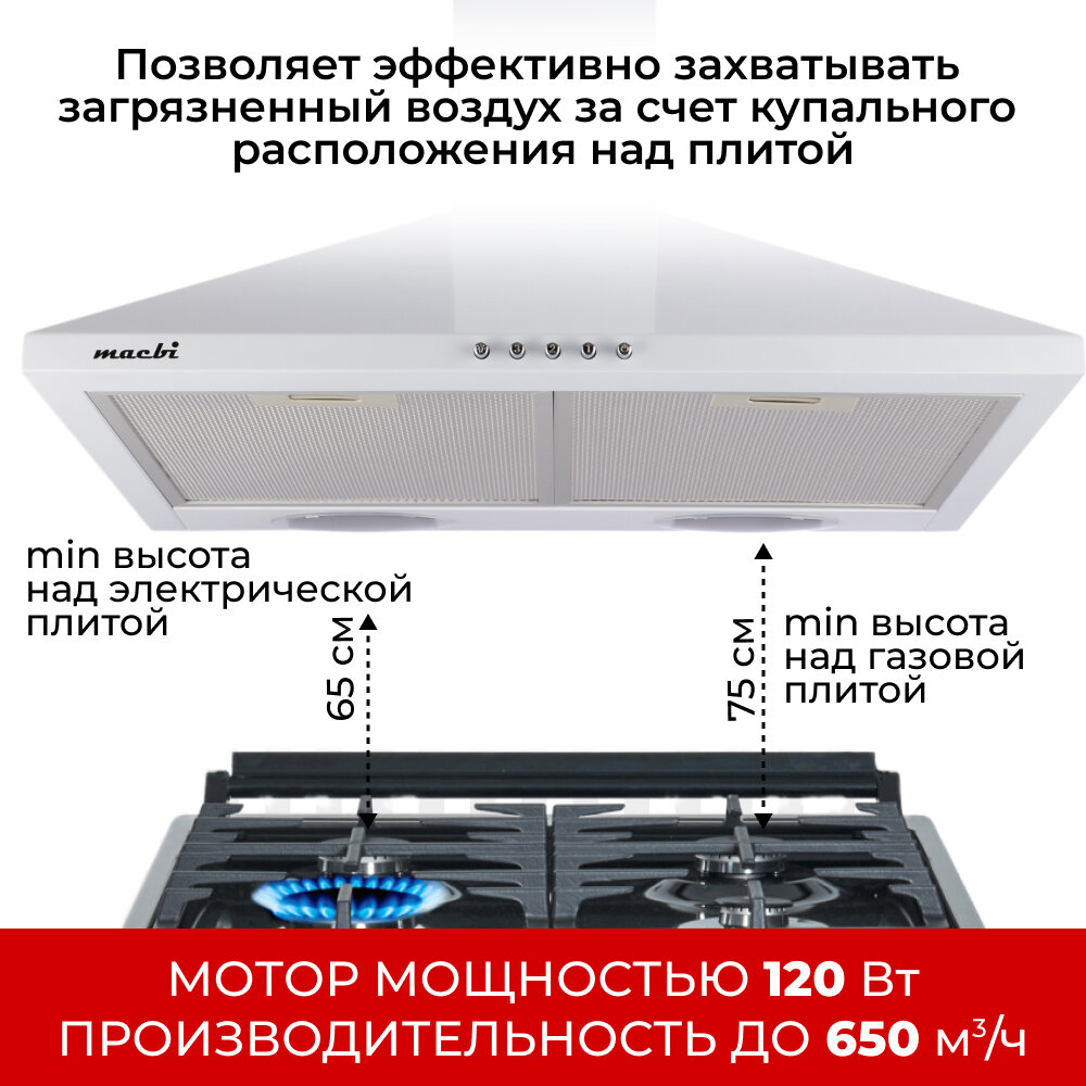 Кухонная вытяжка MACBI DMV 50 650 м/3 белая, купольная интересное: