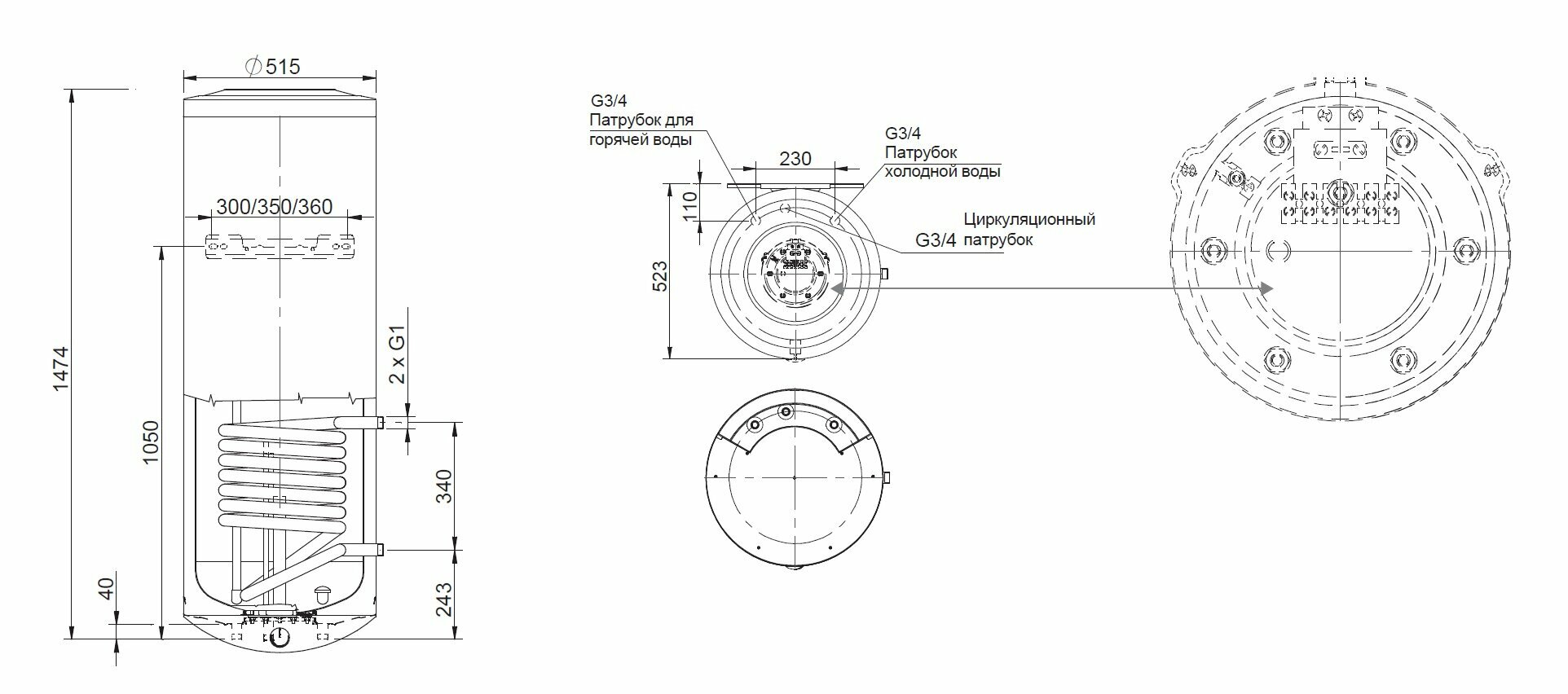 | Дополнительная информация | максимальная мощность теплообменника: 24 кВт; макс. давление воды: 6 атм; площадь теплообменника: 0.81 м²; диаметр входа линии рециркуляции: ¾; вход линии рециркуляции |