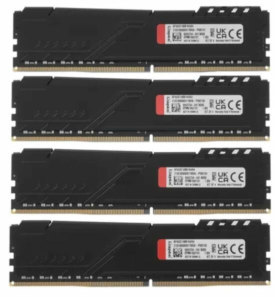 Оперативная память Kingston DDR4 64Gb (4x16Gb) 3200 MHz pc-25600 FURY Beast Black (KF432C16BB1K4/64)