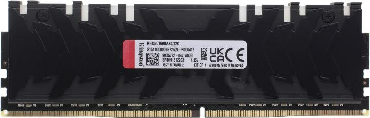 Оперативная память Kingston KF432C16RBAK4/128/32GB / PC4-25600 DDR4 UDIMM-3200MHz DIMM/в комплекте 4 модуля