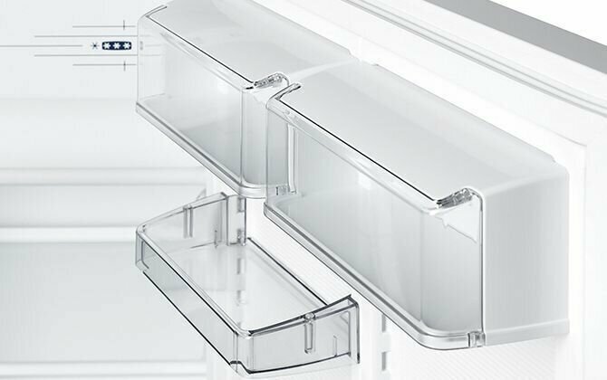 | Плюсы: | Работает тихо. Морозит на отлично. Много дополнительных полочек в двери. Грамотно спланирован объём (много места при небольших габаритах). |