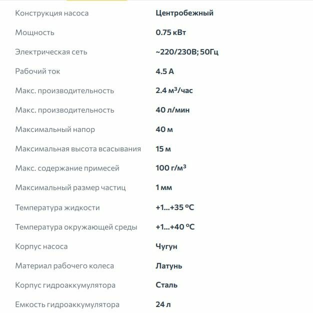 | Максимальный напор | 40 м |