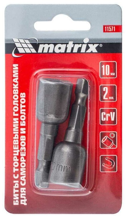 Купить Биты с торцевыми головками Matrix, 10 x 45 мм, 2 шт
