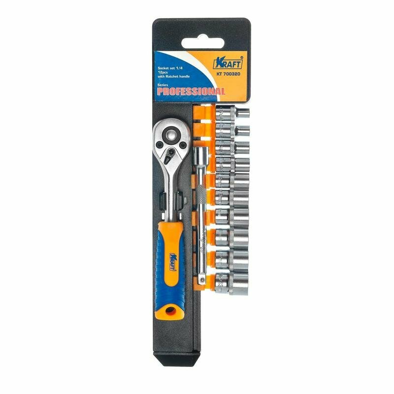 набор торцевых головок 1/4"dr 12 пр. с трещоткой kraft