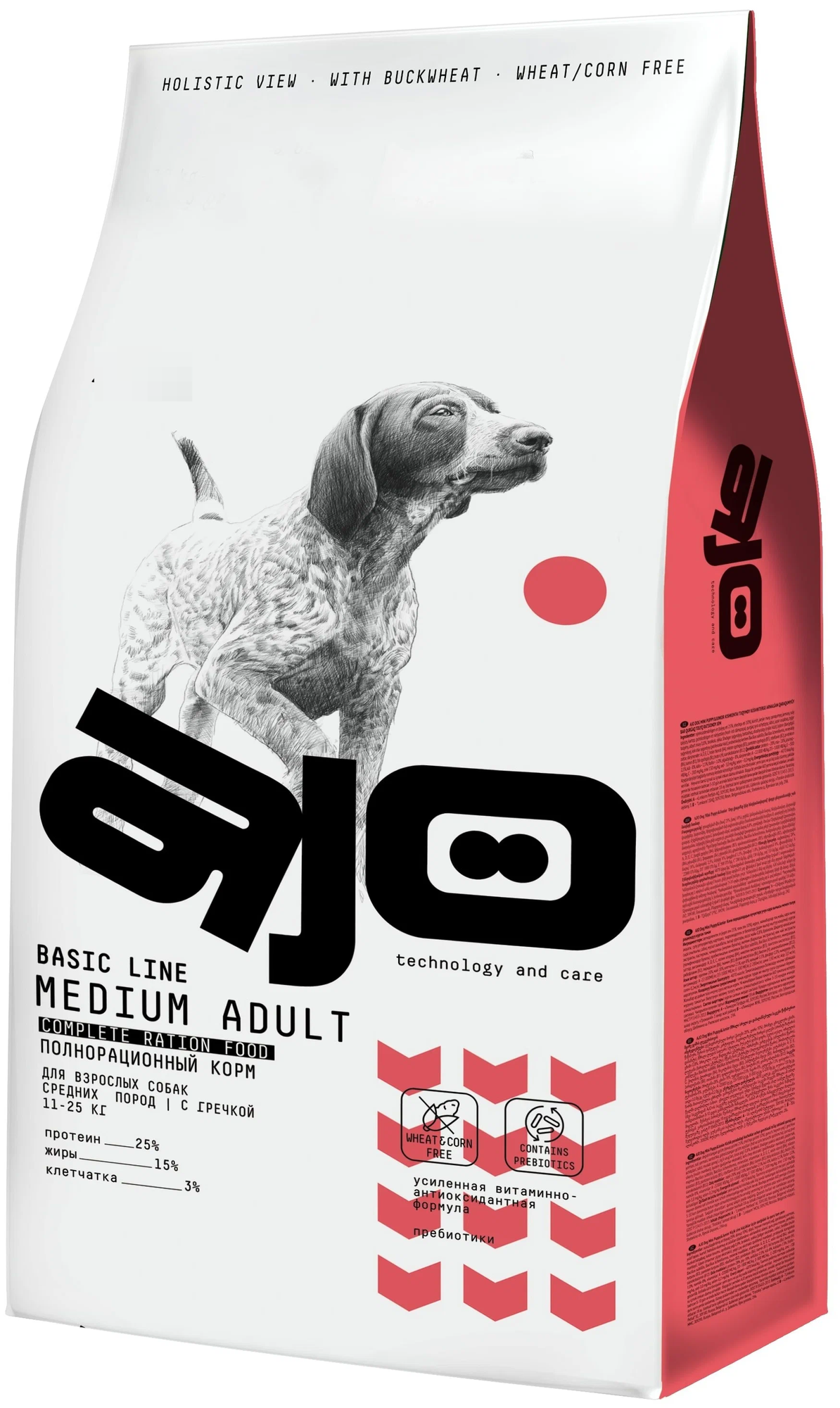 Купить AJO Dog Medium Adult Сухой полнорационный корм с гречкой для взрослых собак средних пород, 2кг