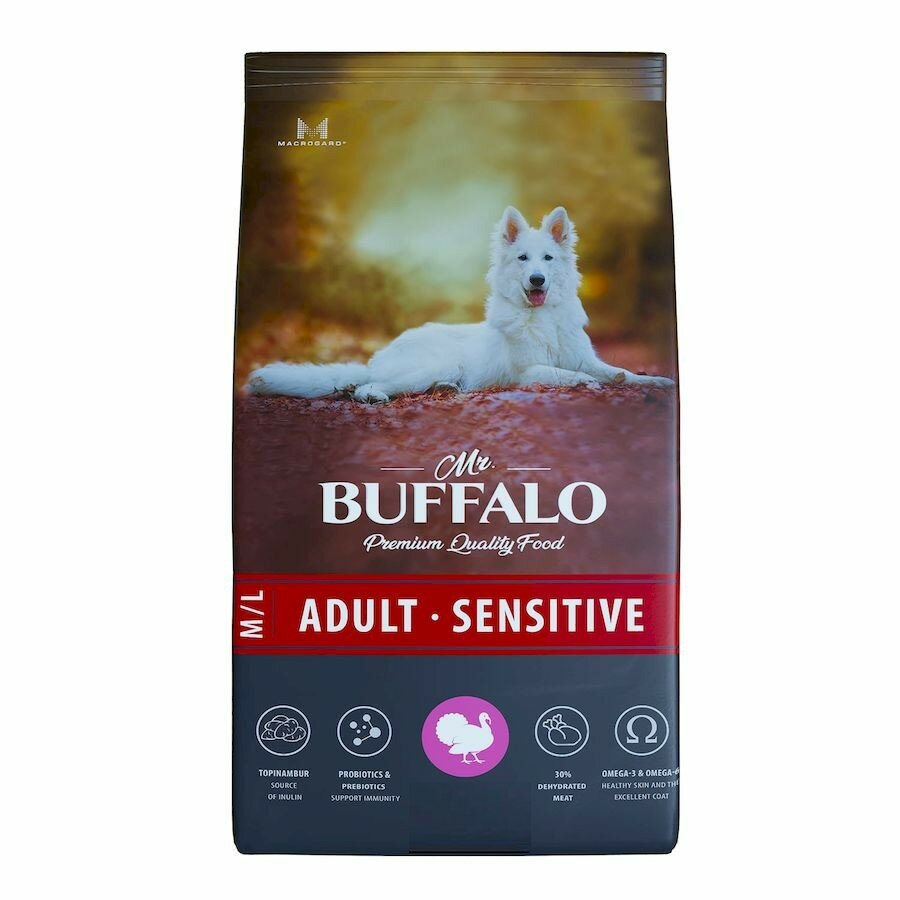 Корм сухой для собак Mr.buffalo ADULT M/L SENSITIVE для собак средних и крупных пород, индейка, 14кг