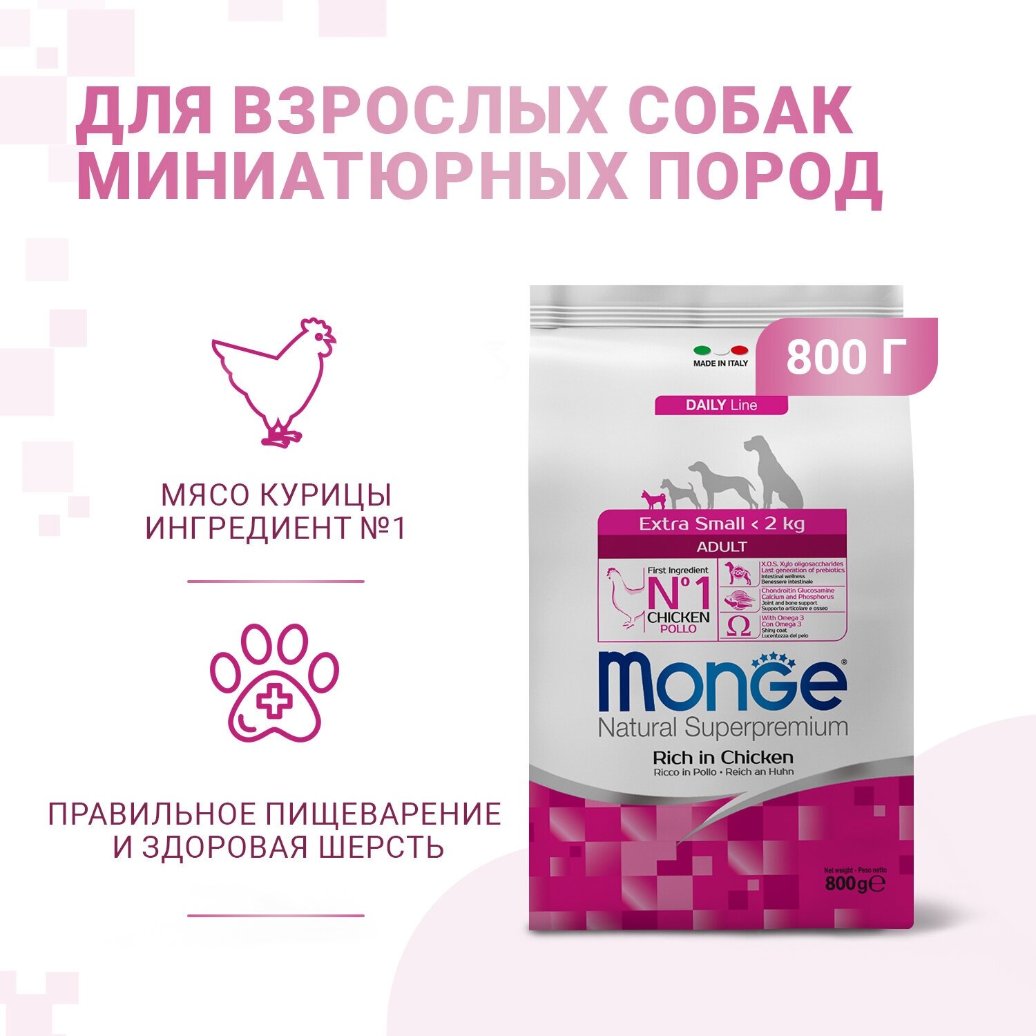 Сухой корм Monge Dog Daily Line Extra Small для взрослых собак миниатюрных пород, из курицы 800 г