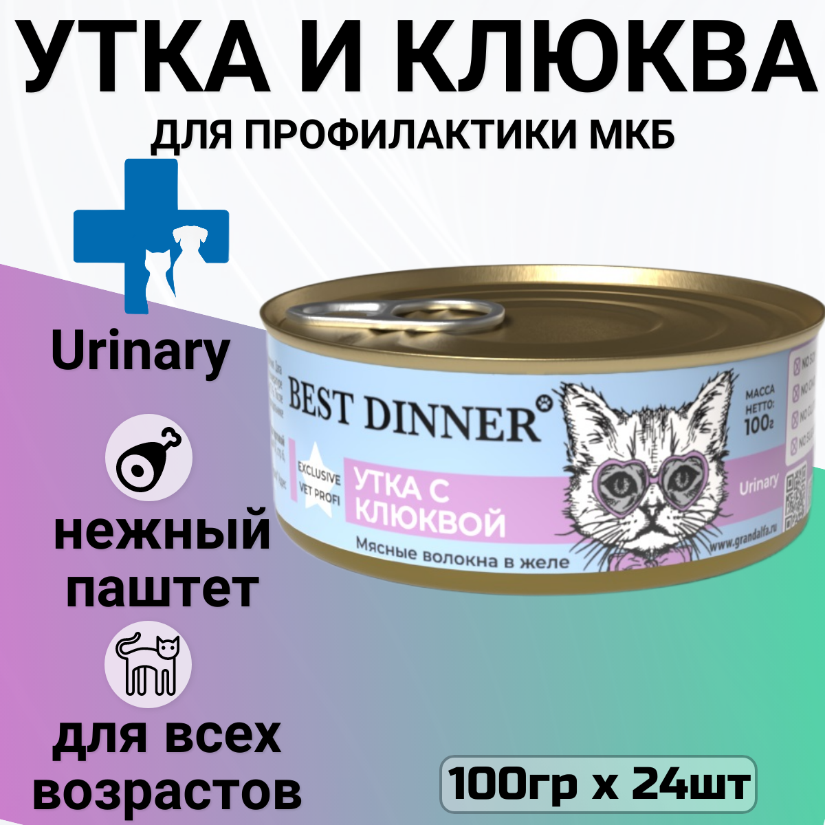 Купить корм для кошек Best Dinner профилактика МКБ, с уткой, с клюквой 24 шт. х 100 г (кусочки в желе)