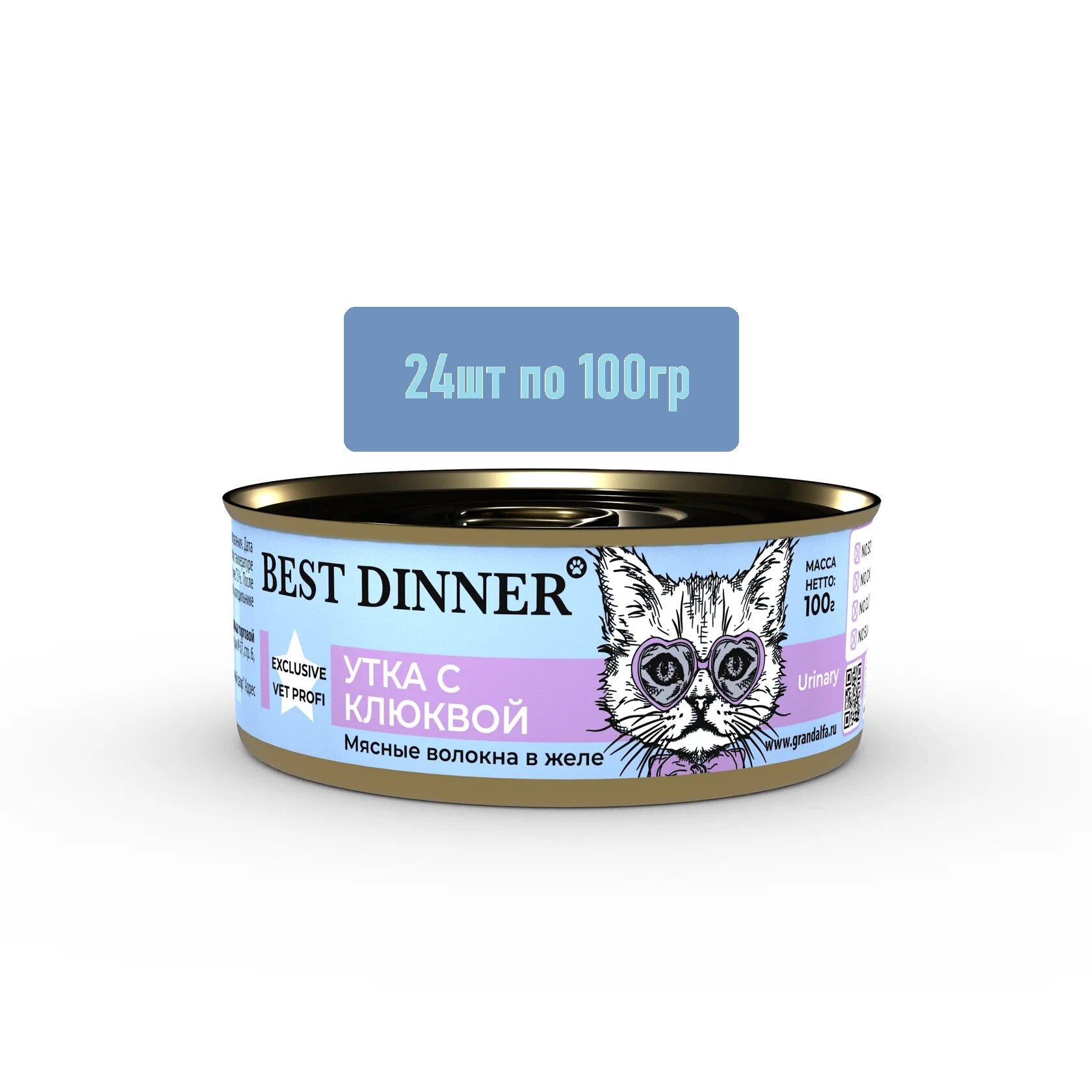Консервированный корм для для кастрированных котов и стерилизованных кошек Best Dinner Vet Profi Urinary Exclusive, утка с клюквой, мясные волокна в желе, 100 гр