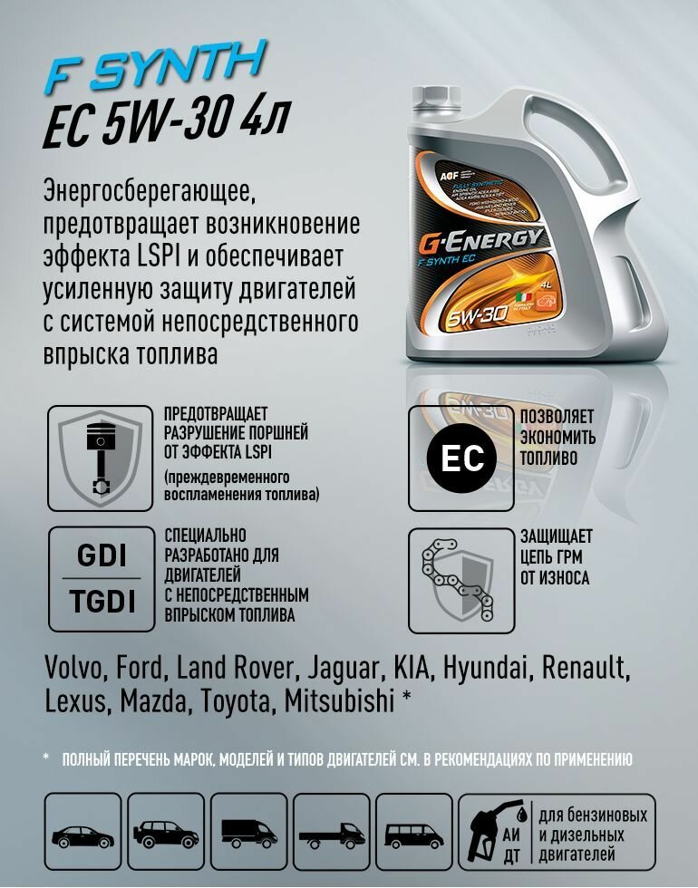 Ниже Вы можете прочитать отзывы на Синтетическое моторное масло G-Energy F Synth EC 5W-30, 4 л, ознакомится с подробными характеристиками, посмотреть интересные обзоры и фотографии на Синтетическое моторное масло G-Energy F Synth EC 5W-30, 4 л.