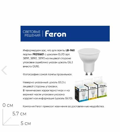 Ниже Вы можете прочитать отзывы на Лампа светодиодная Feron GU10 13W 6400K матовая LB-960 38193, ознакомится с подробными характеристиками, посмотреть интересные обзоры и фотографии на Лампа светодиодная Feron GU10 13W 6400K матовая LB-960 38193.
