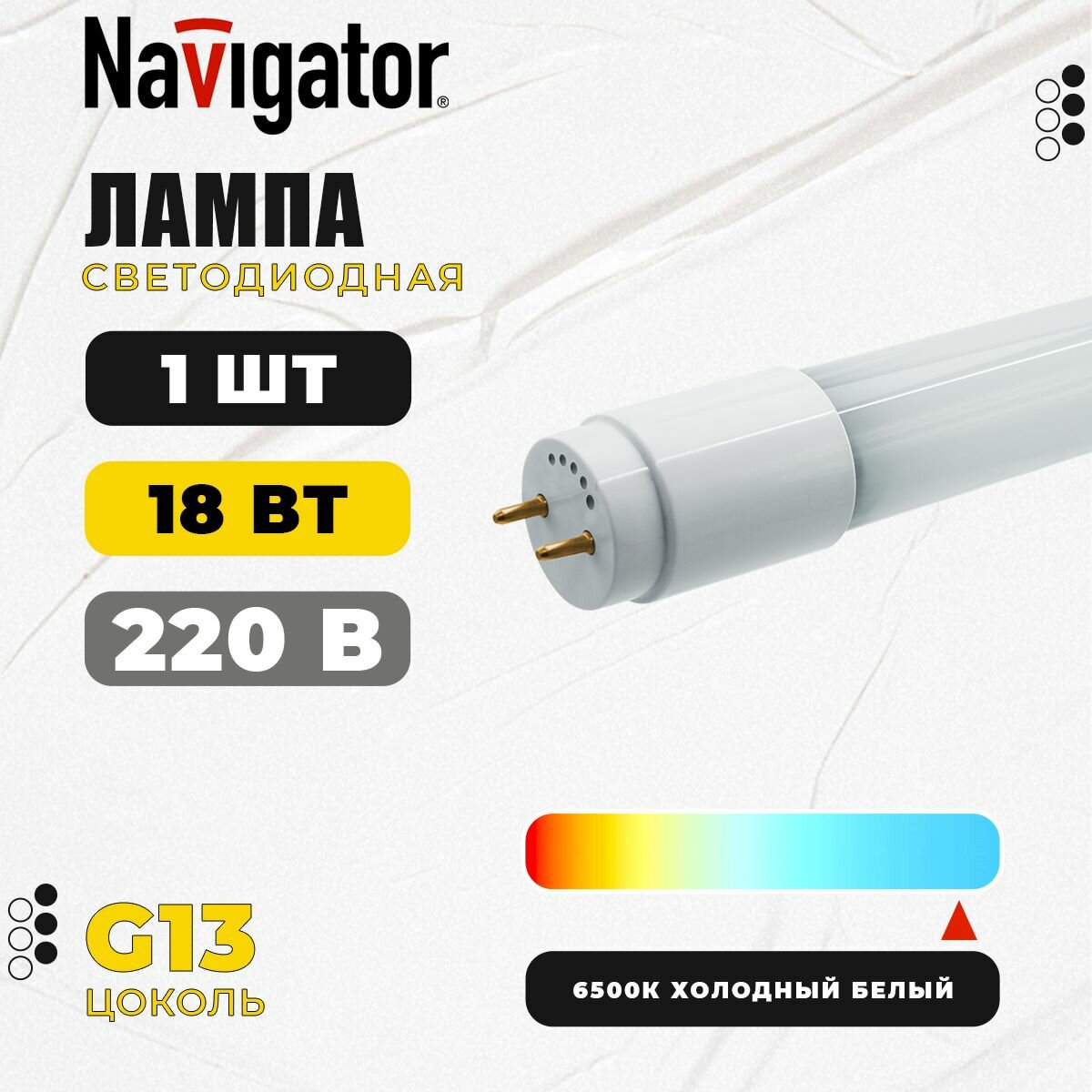 Лампа светодиодная 71 303 NLL-G-T8-18-230-6.5K-G13(аналог 36Вт. 1200 мм | код. 71303 | Navigator ( 1шт. )
