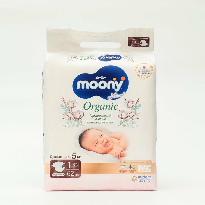 Подгузники MOONY ORGANIC , NB (до 5 кг), 62 шт интересное: