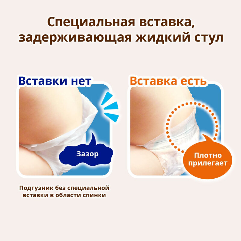 | Особенности | индикатор наполнения / эко-подгузники / эластичные резинки вокруг ножек / эластичный пояс |
