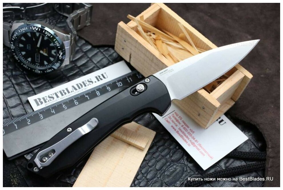 | Дополнительная информация | отверстие или приспособление в задней части рукояти для страховочного корда или ремня; марка стали: CPM-S90V; твердость стали, HRC: 59-60; тип замка: Axis Lock; покрытие клинка: сатинированное; длина сложенного: 115 мм; чехол в комплекте: нет |
