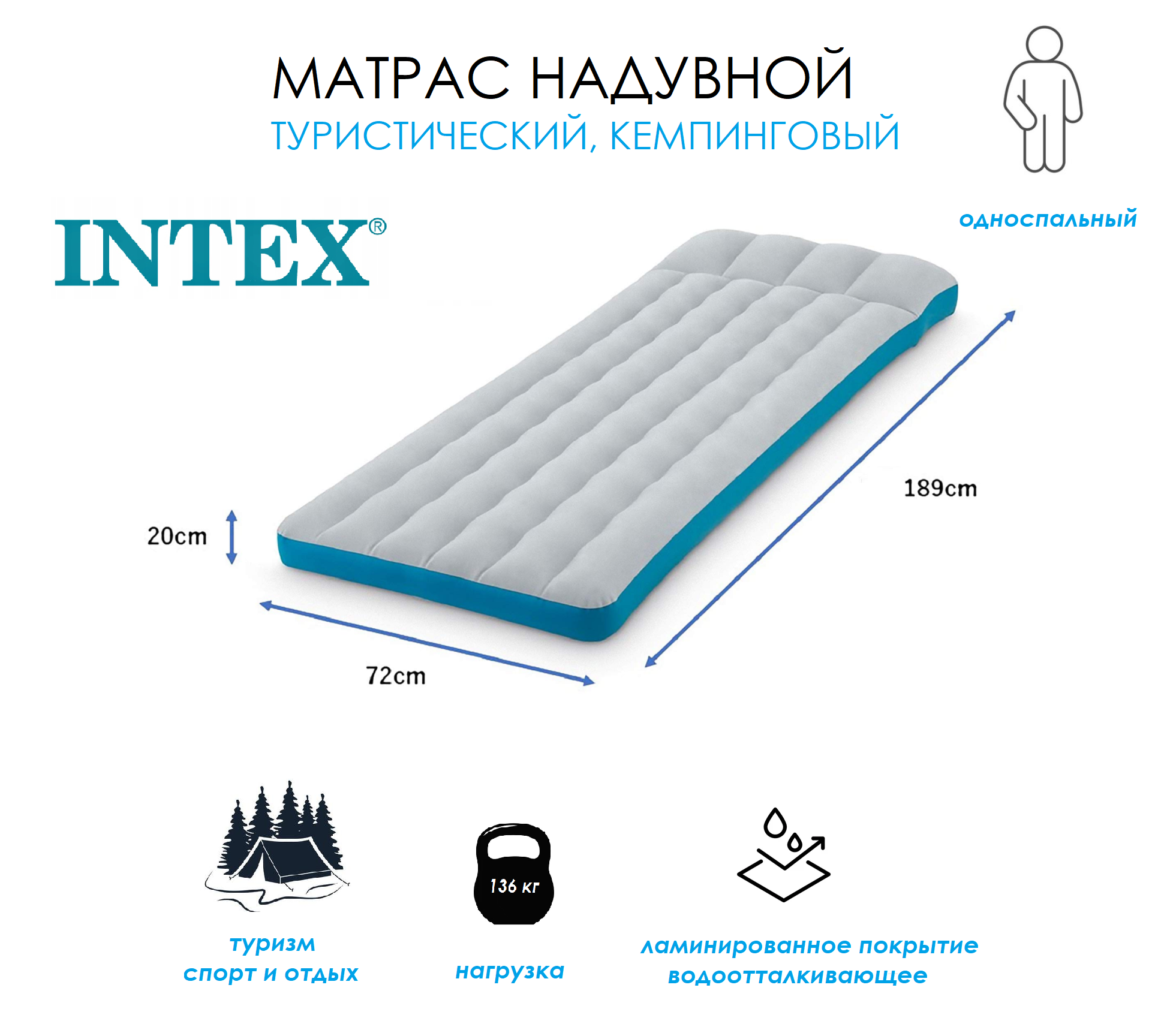 Матрас INTEX "Кемпинг", 189х72х20 см (И67998)