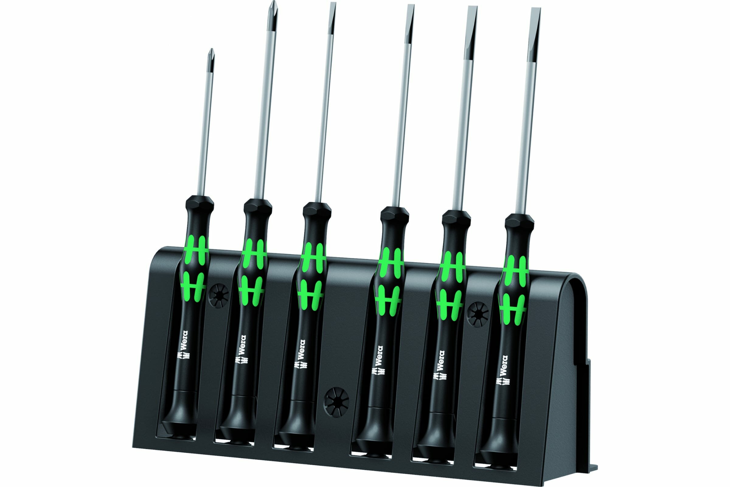 2035/6 B Kraftform Micro Набор отвёрток прецизионных + подставка, 6 пр., PH 0x60/1x80, SL 0.40x2.5x80/0.50x3.0x80/0.60x3.5x80/0.80x4.0x80 WERA WE-1181