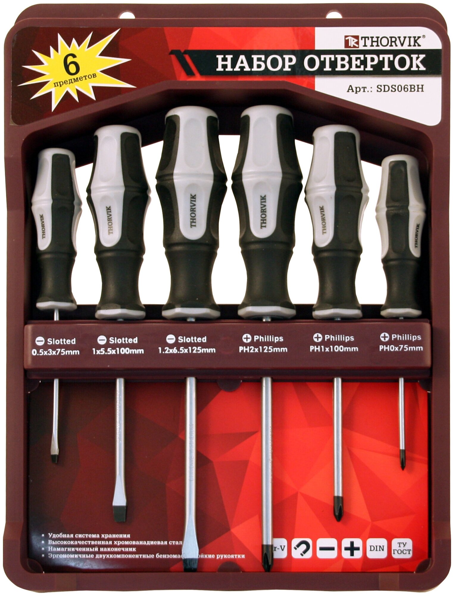 Набор отверточный THORVIK SDS06BH, 6 предметов [052291]