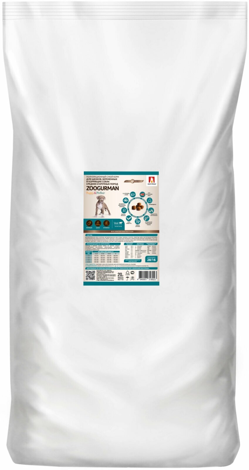ZOOGURMAN PUPPY & MOTHER для щенков средних и крупных пород, беременных и кормящий собак с телятиной (20 кг)