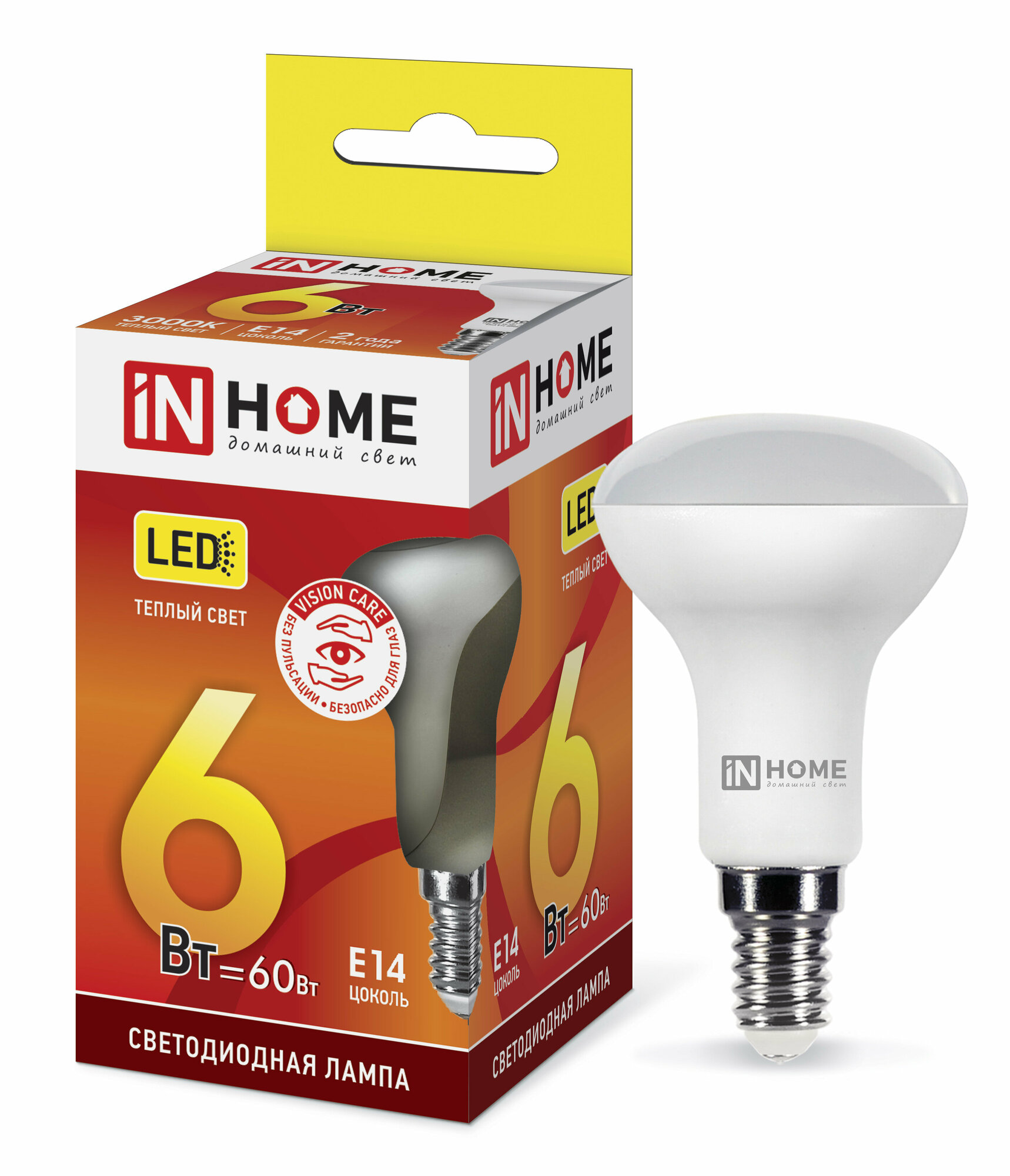 Купить Лампа светодиодная IN HOME LED-R50-VC, 6 Вт, 230 В, Е14, 3000 К, 530 Лм