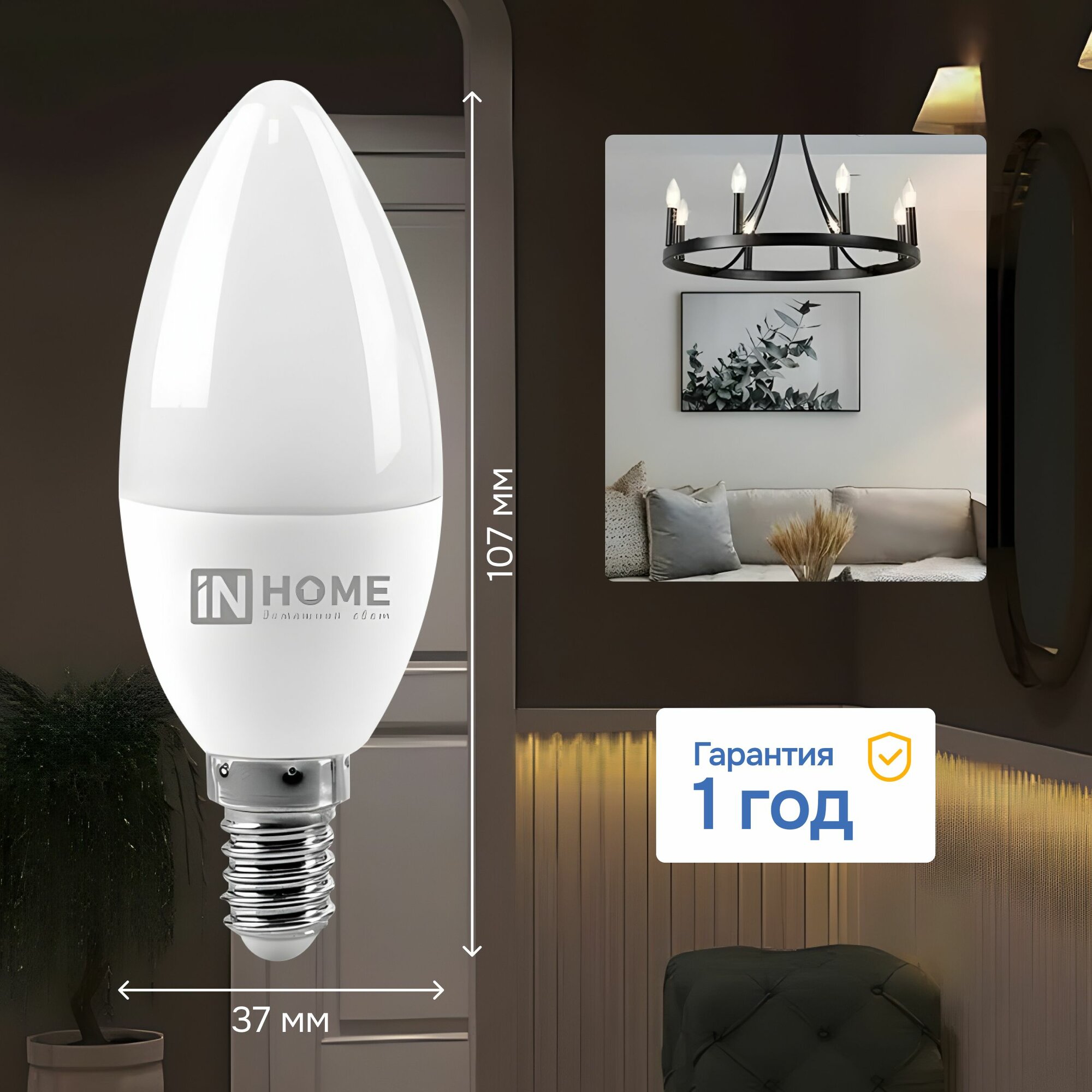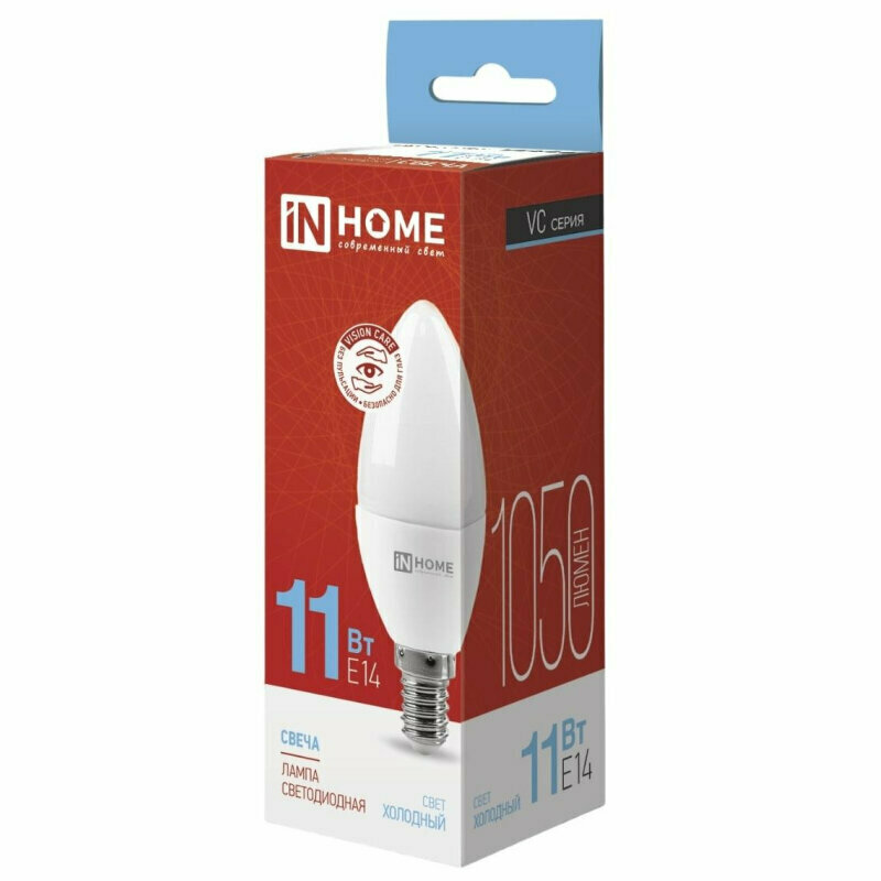Лампа светодиодная IN HOME LED-СВЕЧА-VC, E14, C37, 11 Вт, 6500 К