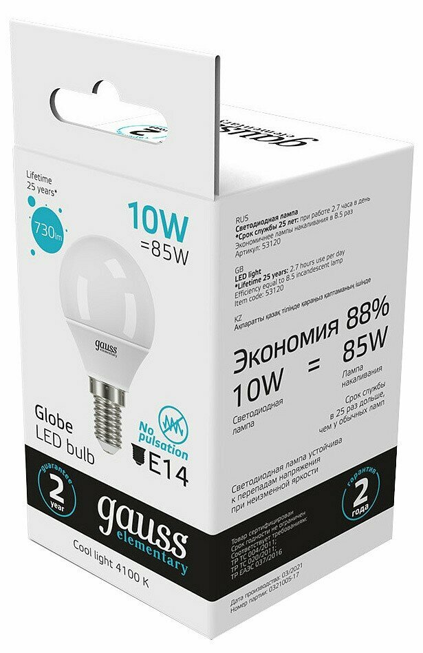 Ниже Вы можете прочитать отзывы на Gauss Лампа Elementary Шар 10W 730lm 4100K Е14 LED, ознакомится с подробными характеристиками, посмотреть интересные обзоры и фотографии на Gauss Лампа Elementary Шар 10W 730lm 4100K Е14 LED.