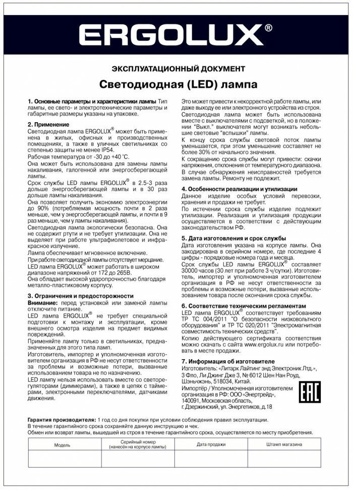 | Производитель | Ergolux |