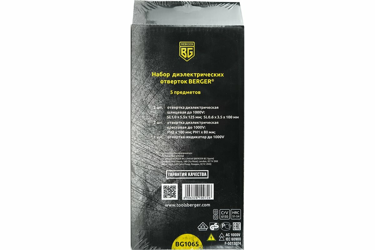 Berger BG Набор отверток диэлектрических до 1000V 5 предметов Berger BG1065 .