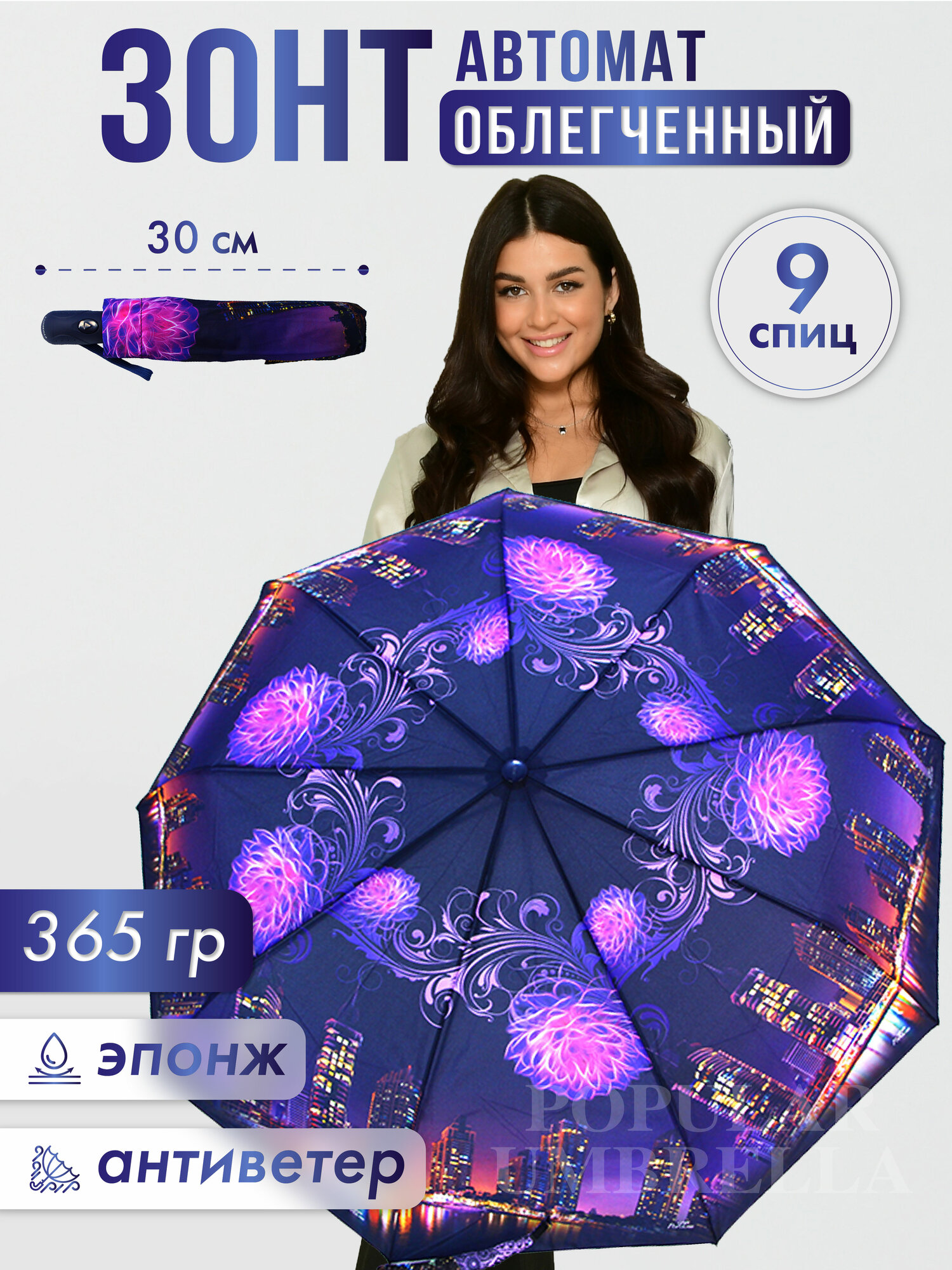СохранитьЗонт женский автомат, зонтик взрослый складной антиветер 111D-9, темно-синий,фиолетовый интересное: