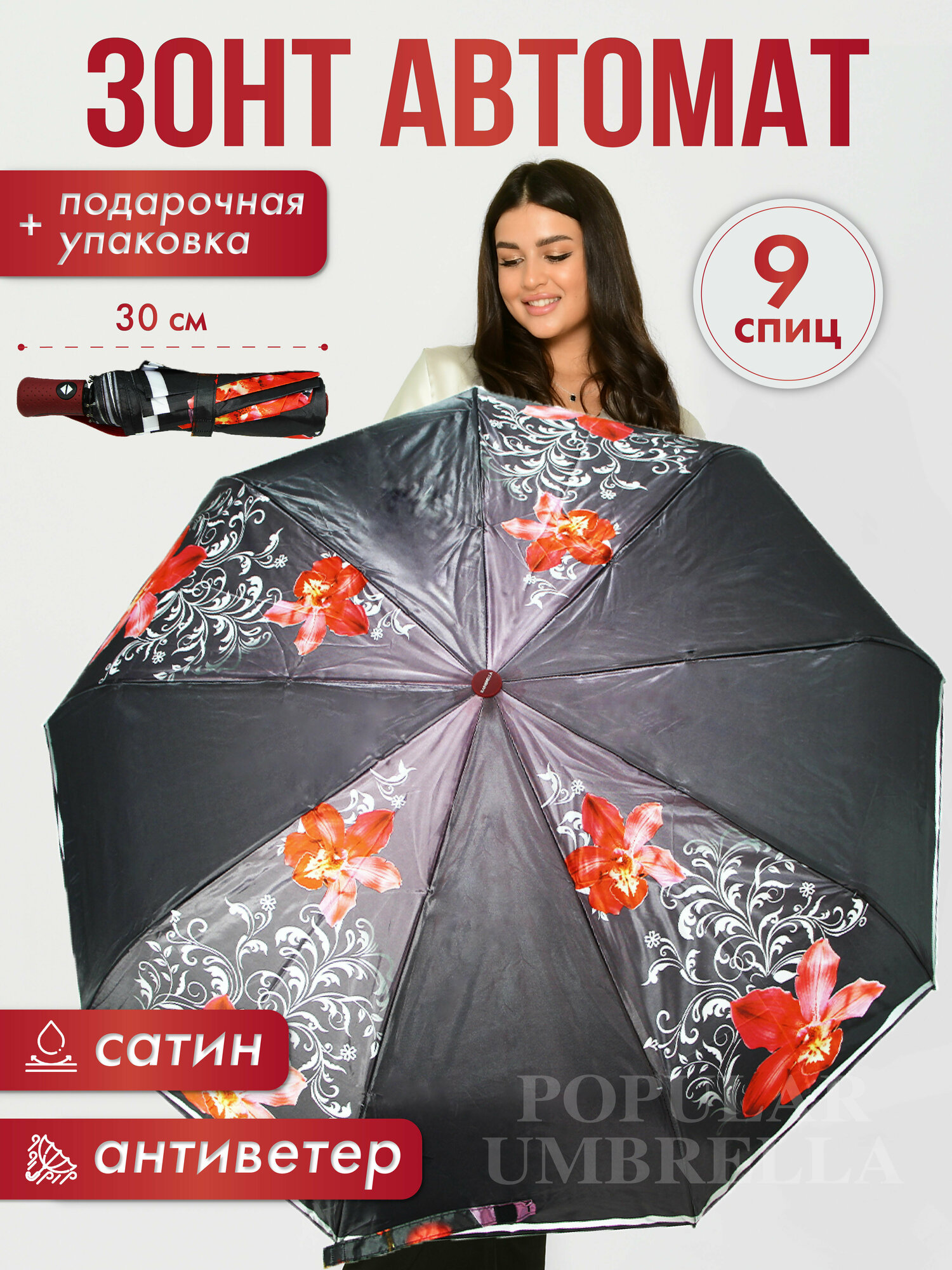 Женский складной зонт Rain-Brella автомат 174-9/темно-коричневый
