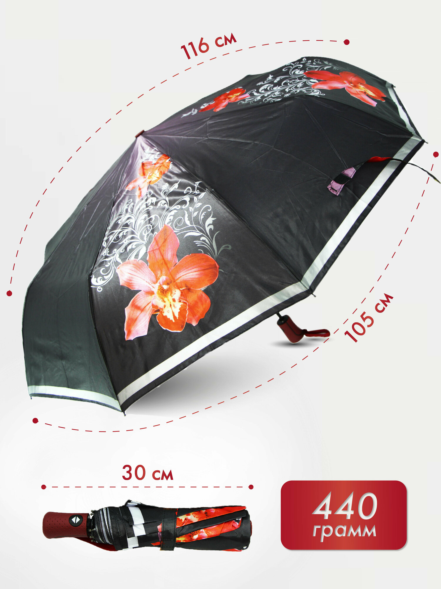 Зонт "Три Слона" женский №310-5, купол D=103 см, 10 спиц, суперавтомат бежево-черный