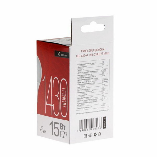 СохранитьЛампочка светодиодная LED-A60-VC 15Вт 230В Е27 4000К 1430Лм IN HOME интересное: