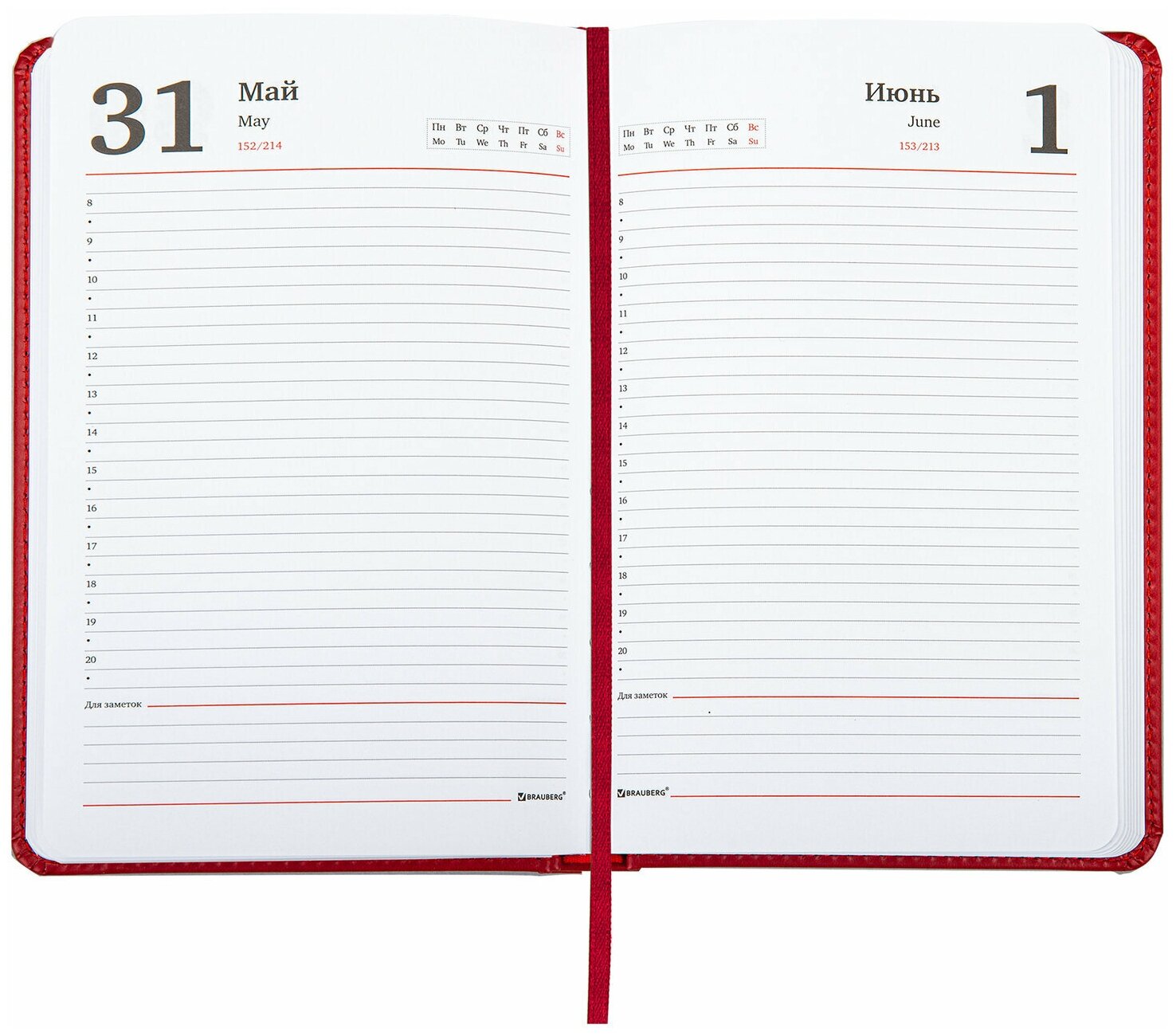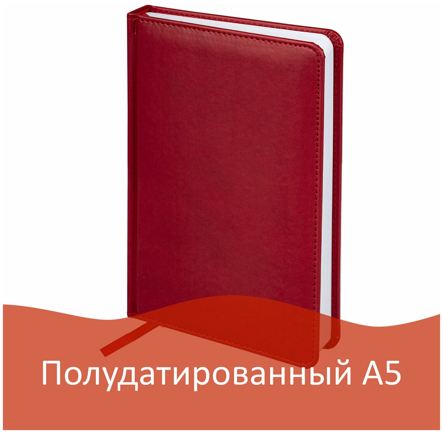Полудатированный ежедневник BRAUBERG А5 138x213 мм "New York", под гладкую кожу, 192 л, бордовый 125954
