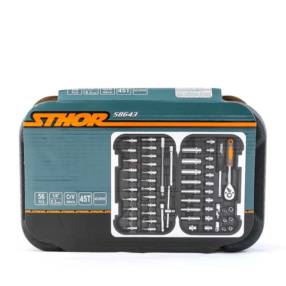 Набор инструментов STHOR 1/4", 56 предметов, CrV, 45-47 HRC, кейс, 58643 Отличный подарок