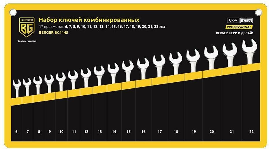 Набор ключей комбинированных Berger BG1145 6-22 мм, 17 предметов