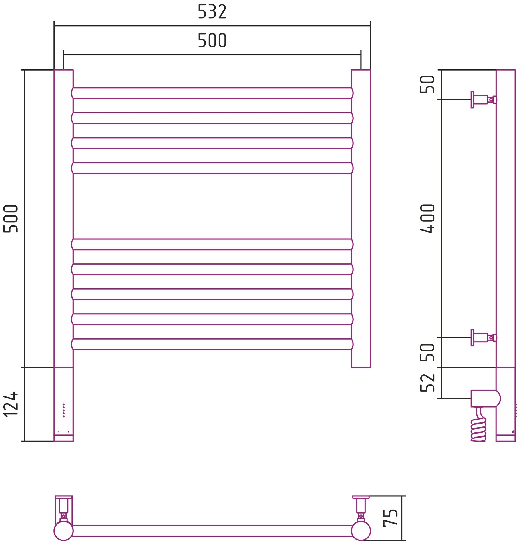 Электрический полотенцесушитель Сунержа Богема 3.0 прямая 500х500 лтэн без покрытия интересное: