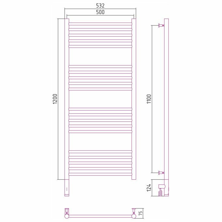 Полотенцесушитель электрический Сунержа Богема 3.0 прямая 1200х500 МЭМ левый Без покрытия