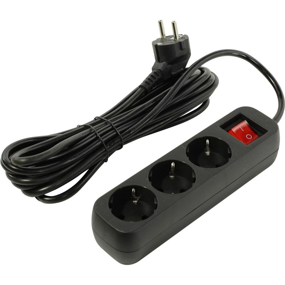 Удлинитель с выключателем Defender S, 5.0 м, 3 розетки, черный