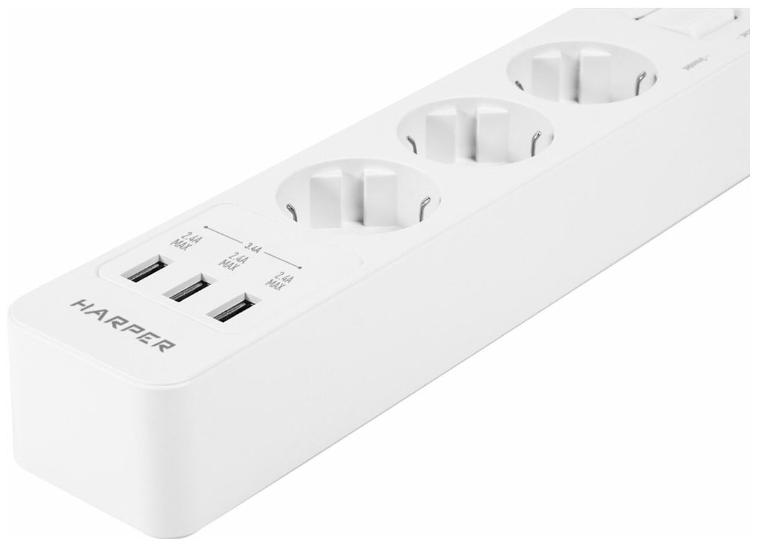 Сетевой фильтр HARPER UCH-360, 3 розетки, 3 м, с/з, 16А / 4000 Вт белый интересное: