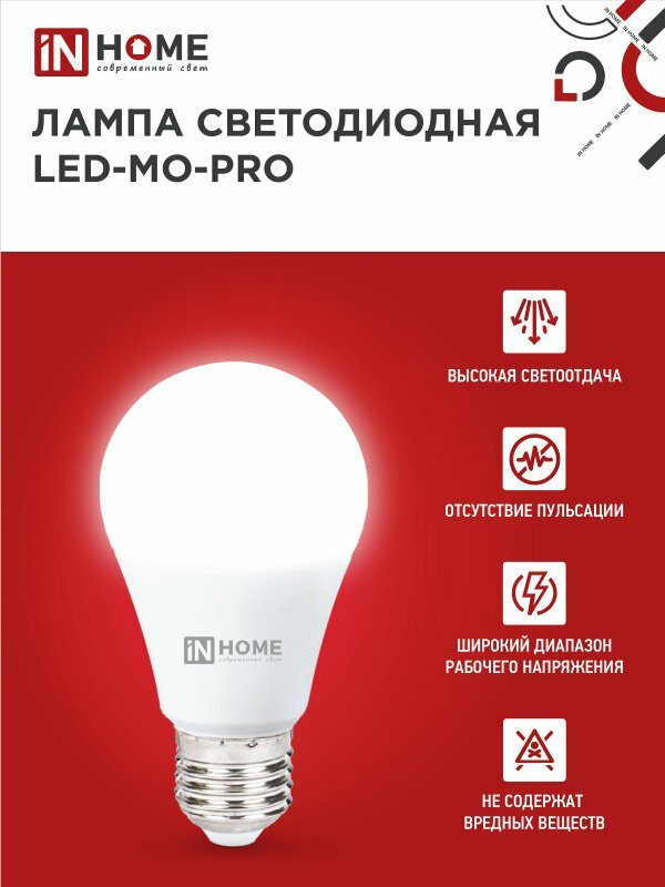 Лампа светодиодная LED-MO-PRO 10Вт 4000К нейтр. бел. Е27 900лм 12-48В низковольтная IN HOME 4690612038032