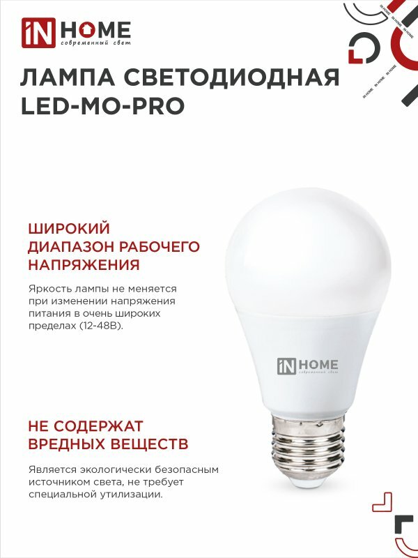 Лампа светодиодная низковольтная LED-MO-PRO 10Вт грушевидная матовая 4000К нейтр. бел. E27 900лм 12-48В IN HOME 4690612038032 интересное: