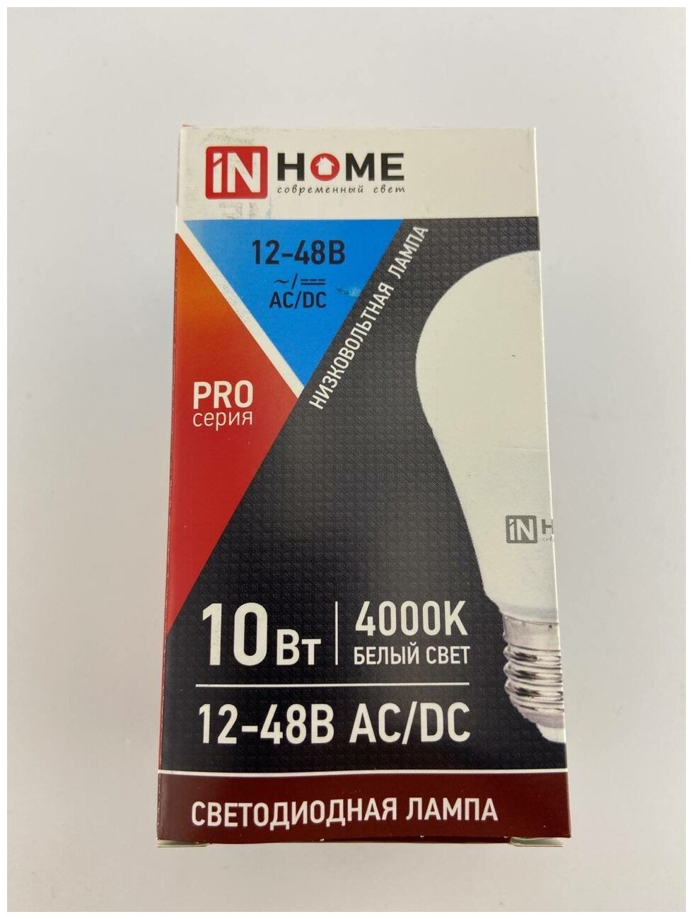 Лампа светодиодная "IN HOME" груша 10W Е-27 низковольтовая 12-48В, 4000К, 900Lm 4690612038032